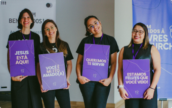 Também temos uma equipe de CONEXÃO: membros da igreja que cuidam da recepção de convidados, novos membros, visitantes. Eles se dedicam e se organizam para que você saiba que, aqui, você é amado e bem-vindo! Pode chegar!